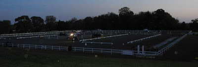 | Who needs daylight? Finishing main arena prep after dark Wednesday night |