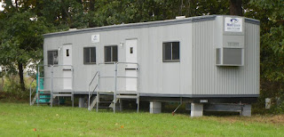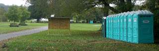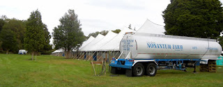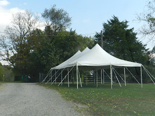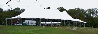 | The VIP tent is up, and flag poles in front of it are ready for flags |