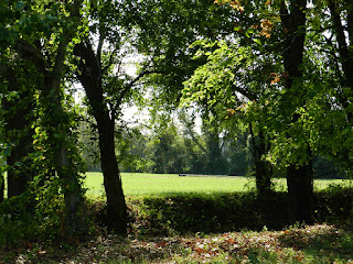 | Green trees around the sunken road. Next weekend we should have a host of fall colors adding to the beauty of Fair Hill. |